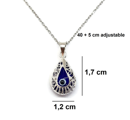 Blue Crystal Evil Eye Necklace for Good Luck - 925 Sterling Silver