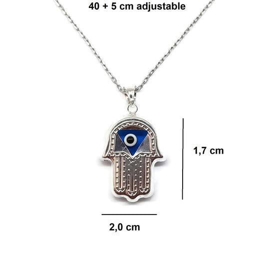 Hand of Fatima necklace with enameled Turkish eye pendant 925 sterling silver to protect you - | Mystic Jewels By Dalia
