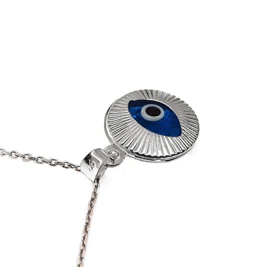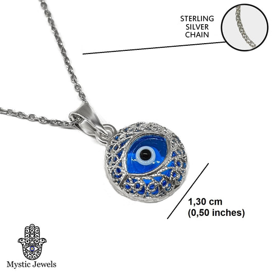 Crystal and 925 Sterling Silver Evil Eye Necklace - Round Turkish Eye for Gifting