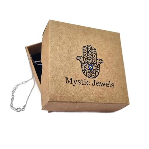MYSTIC JEWELS - Hand of Fatima and Evil Eye Pendant with stones, 925 Sterling Silver Jewelry, minimalist, for Women and Girls with Gift Box (D)