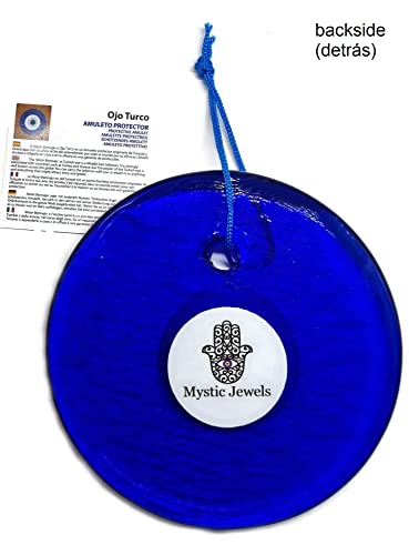 MYSTIC JEWELS - Crystal against the Evil Eye, Blue and White, Large Turkish Eye 12 cm Approx with Hole, Good Luck Charms to Hang on the Wall (Classic)