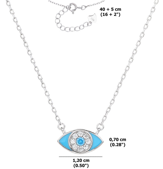 MYSTIC JEWELS - 925 Sterling Silver Necklace; Evil Eye Protector, Turkish Eye Pendant Necklace with Zircons, Eye Shape, Amulet Jewelry for Women