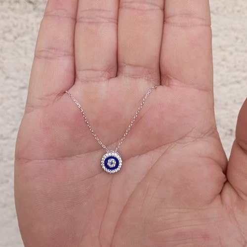 MYSTIC JEWELS By Dalia - Round 925 Sterling Silver Necklace, evil eye with cubic and enameled zirconia, gift for women