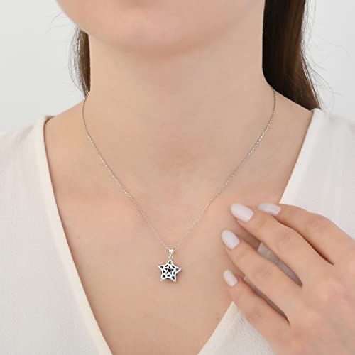 MYSTIC JEWELS By Dalia -Necklace 925 sterling silver Navy blue enamel and turquoise eyes, minimalist, Good luck Elephant or Star model (Star)