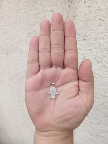 MYSTIC JEWELS By Dalia - 925 Sterling Silver Hamsa Necklace with a 7mm Evil Eye Pendant Hanging (Filigree)