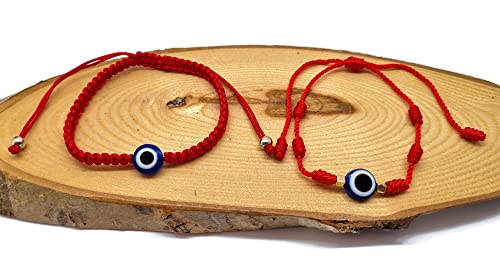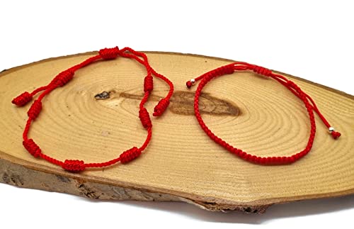 Mystic Jewels by Dalia - Bracelet Kabbale - Cordon de fil rouge à 7 nœuds avec boules - unisexe - réglable - protection contre le mauvais œil, bonne chance, bonne chance (Rouge)