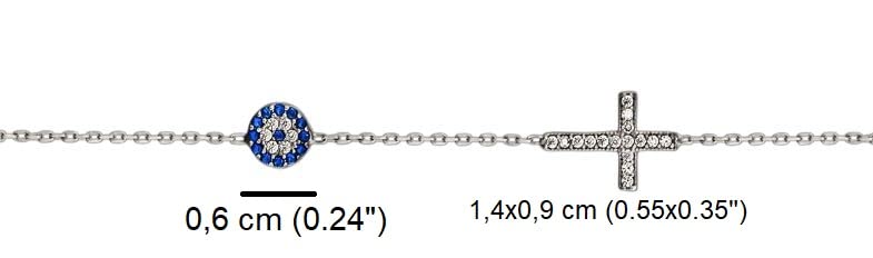 - Rhodium finish 925 sterling silver cross and eye bracelet