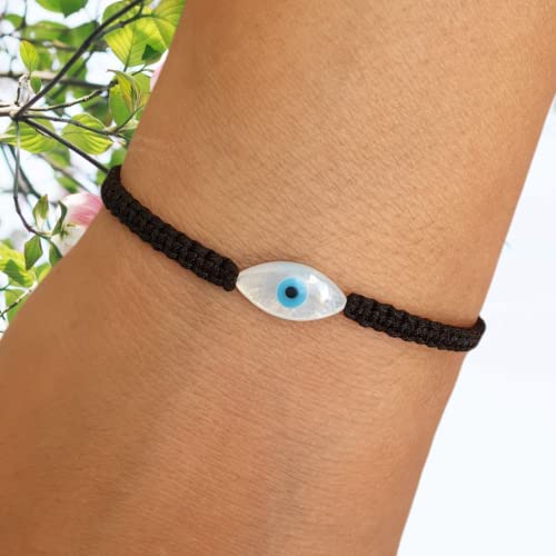 MYSTIC JEWELS By Dalia - Red macrome thread bracelet with mother of pearl and Turkish eye, for good luck, Evil Eye protection, Good Luck (Eye - Black)