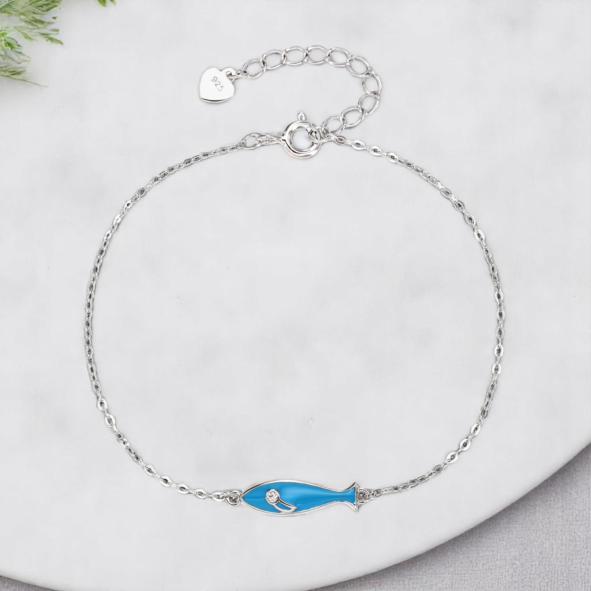 Pulsera de Cadena con Dije de Pez en Plata 925 – Esmalte Azul y Circonita – Diseño Minimalista con Acabado en Rodio – Ajustable 16 + 3 cm – Con Bolsita de Regalo